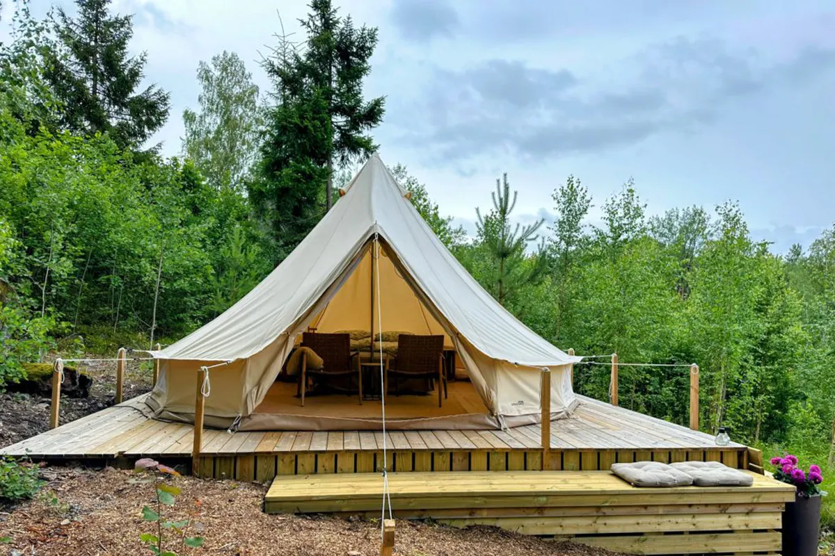 Tenk Afrika møter Norge: Store telt med tregulv, dyner, varmeovner og stearinlys, midt i uberørt natur. Noen steder kombinerer dette med aktiviteter som dyresafari, rideturer eller båtturer.