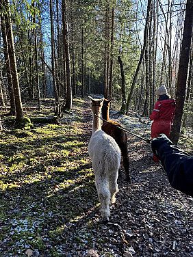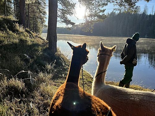 Det beste var å kunne gå en tur i skogen med en alpakka! Bjørn som var vår guide hadde kjempemye kunnskap om dyrene. Alt fra stamtavler til dyrene på gården til historie og fakta om alpakkaer. Anbefales på det sterkeste!