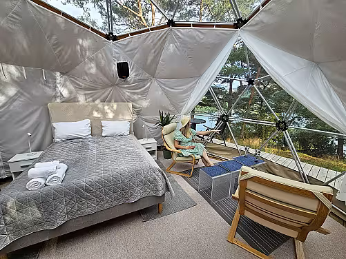 Se for deg å være omgitt av ingenting annet enn vill natur på alle kanter med nattehimmelen som glitrer over deg, og lydene av naturen raslende forsiktig rundt deg mens du sovner på en myk og behagelig seng. Hva venter du på? Ta med din bedre halvdel på en spektakulær overnatting hvor komfort møter rå natur og lag minner for livet!