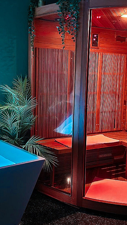 After the float tank and massage, I went to the relaxation room. It had everything I needed - a cold bath, sauna, tea, and fresh fruit. It was nice to have all these things in one place.