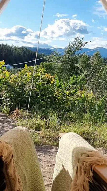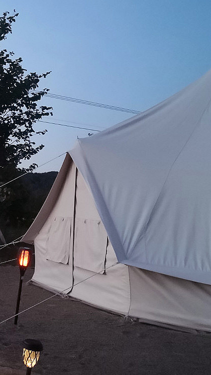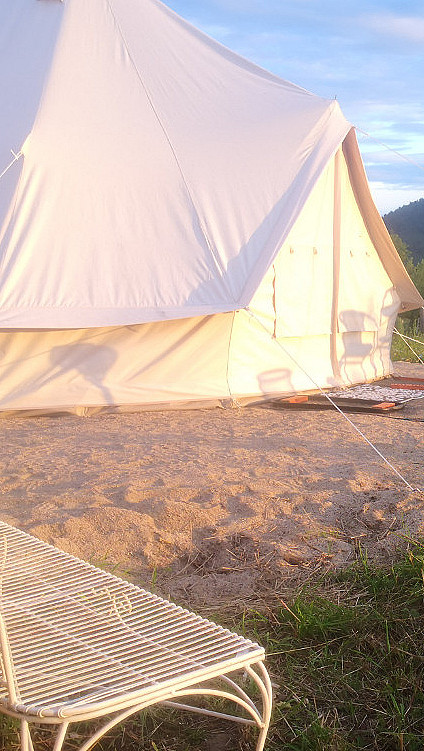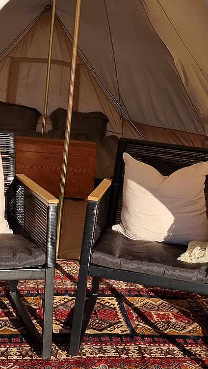 Luksusteltet er utstyrt med en myk og behagelig seng, og har et fint uteområde hvor man kan lene seg tilbake og verdsette synet av den flotte naturen som omgir teltet. Her kan man sitte i ro og fred mens solen takker for seg, og natten melder sin ankomst. Om morgenen vil man våkne til lyden av fuglekvitter, og kan nyte en deilig kopp kaffe fra senga.