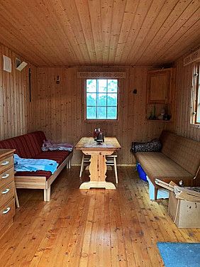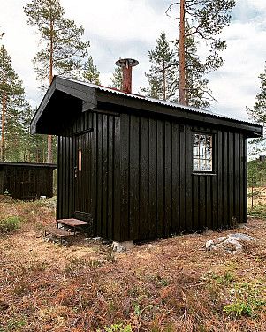 Den andre minihytta er kun 8 kvadratmeter, men inneholder to sengeplasser, kjøkken, bad, spiseplass, oppbevaring og veranda. Den har strøm via solcelle til lys og enkle apparater, samt et separat toalett inne i hytta. Hyttene tar deg tilbake til det enkle liv, hvor det er gode utgangspunkt for turer i skog og mark, fiske og sjelefred. Pakk med mat, drikke og sengetøy, og nyt freden og roen.