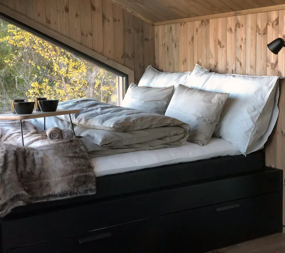 Man kan lage seg en god middag til kvelds, spille spill og slappe av, før man kryper opp i den behagelige sengen og sovner til lyden av regnet som plasker på taket. Neste morgen kan man våkne til solskinn som strømmer gjennom de store vinduene og spise en god frokost på terrassen.