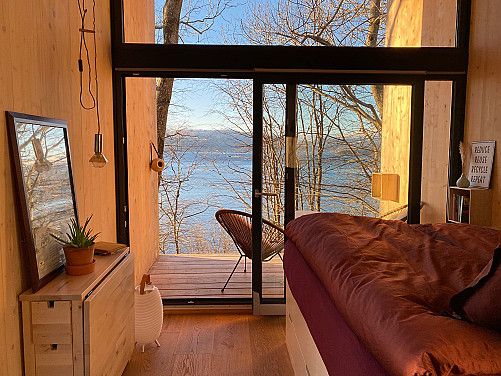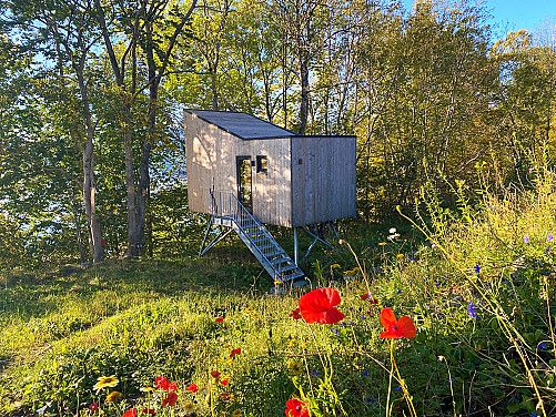 La gavemottaker lytte til morgenfuglenes idylliske sang og vinden som suser i trærne - den unike stillheten når sola står opp er helt enestående. På denne lekre panoramahytta kan man få kontakt med naturen uten å ofre alle hjemmets bekvemmeligheter.