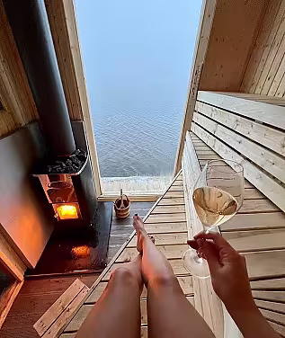 💫 Hva gjør dem unike Saunaen ligger på vannet og gir en helt særegen kombinasjon av varme, utsikt og nærhet til naturen. Med plass til små grupper og tilgang til sjøbad fra eget platå, er dette en opplevelse som balanserer det rå og det behagelige på perfekt vis.