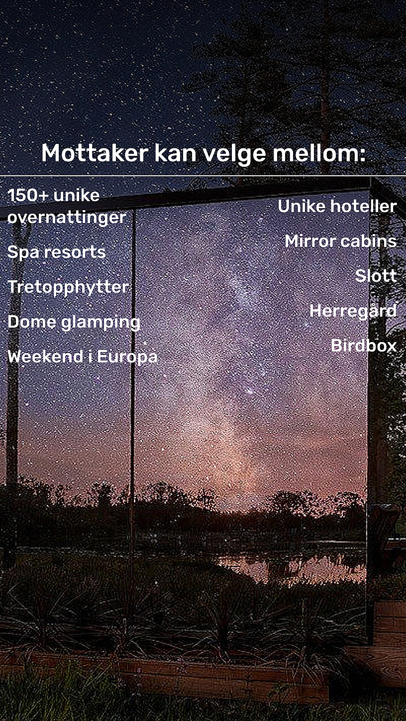 - Gi mottakeren frihet til å velge sin drømmeovernatting