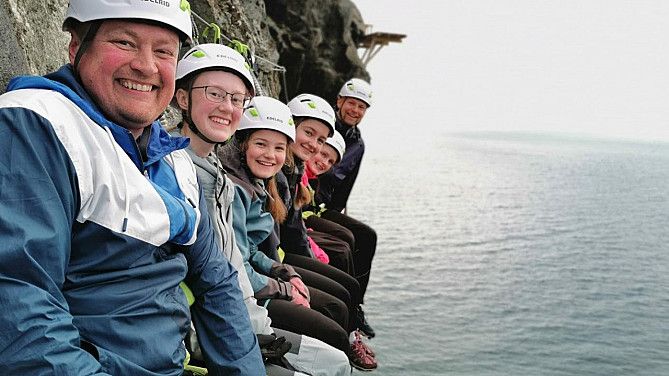 🧗 Sikkerhet i høysetet med profesjonelt utstyr og veiledning 🌄 Klatreruter med fantastisk panoramautsikt over fjord og fjell 🚀 Utfordringer som passer både nybegynnere og erfarne eventyrere
