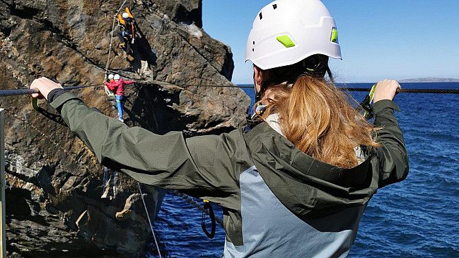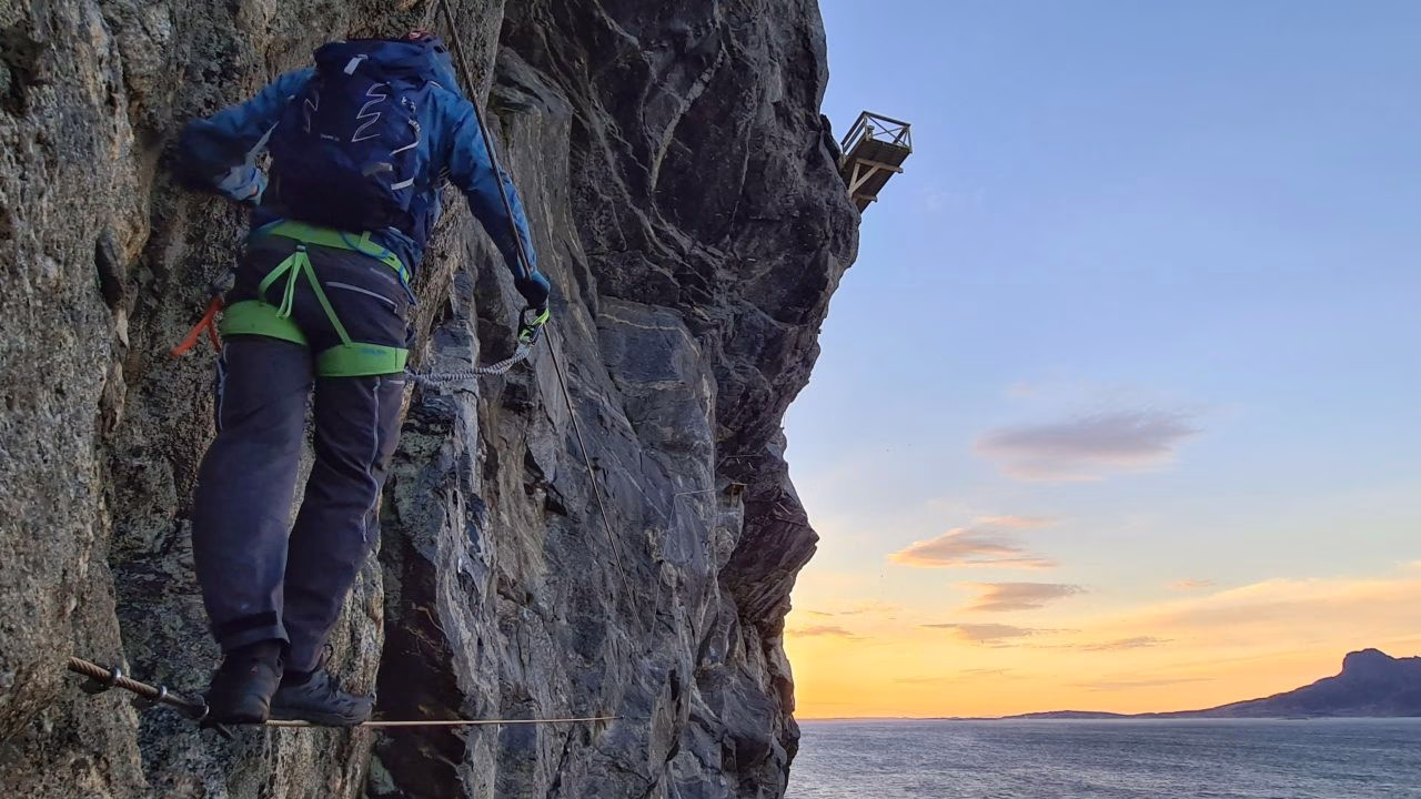 Like utenfor Bodø finner man denne spektakulære Via Ferrata opplevelsen! Rutene slynger seg langs en klippe over havet med fantastisk utsikt over fjorden. Rutene er relativt krevende og bratte, men dyktige og erfarne guider veileder klatreturen. Dette bidrar til en trivelig og trygg opplevelse for alle som deltar, og gjør at de aller fleste som har lyst til å prøve seg kan klatre rutene. En uforglemmelig naturopplevelse venter!